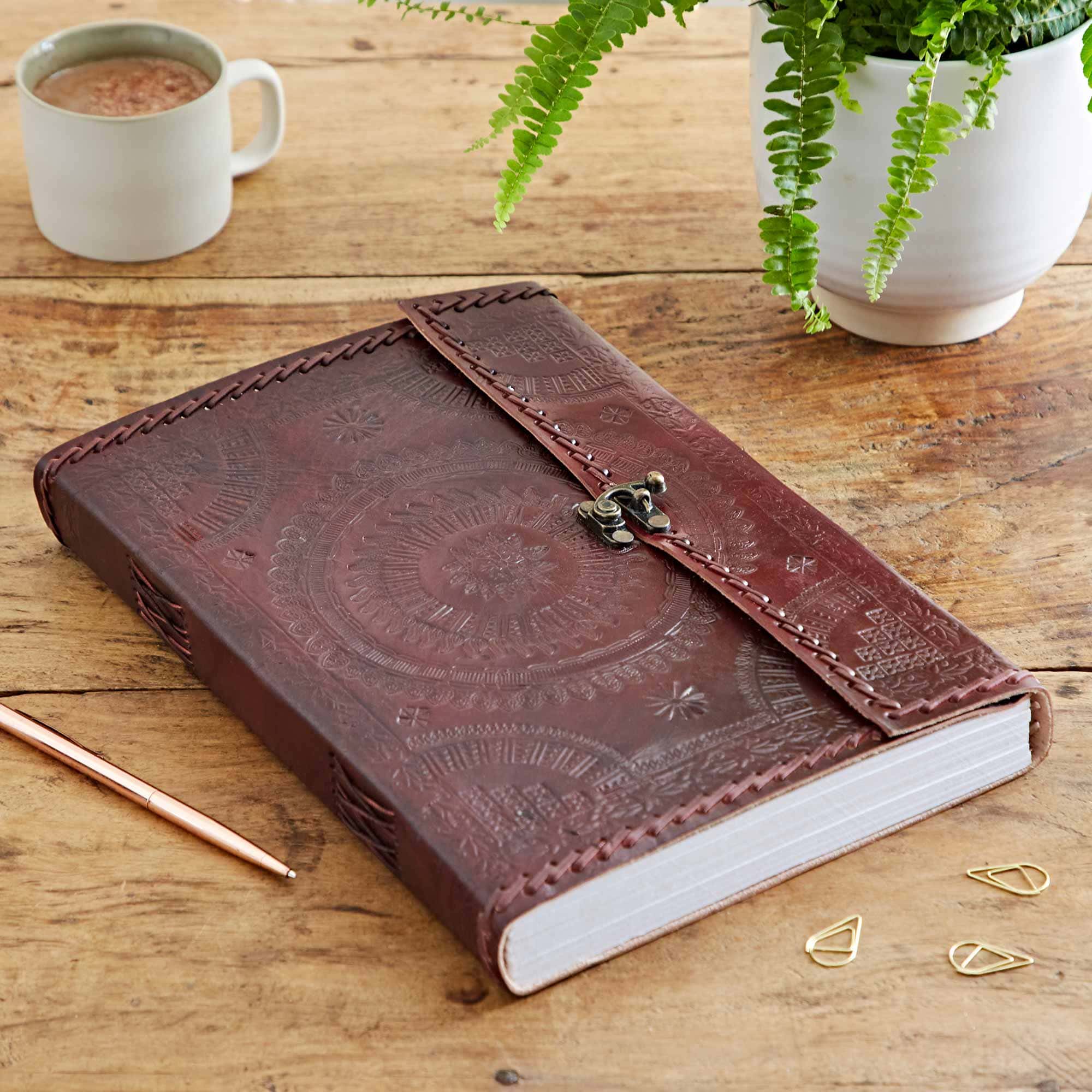 Indra A4 Embossed and Stitched Leather Journal with Semi-Precious Stone