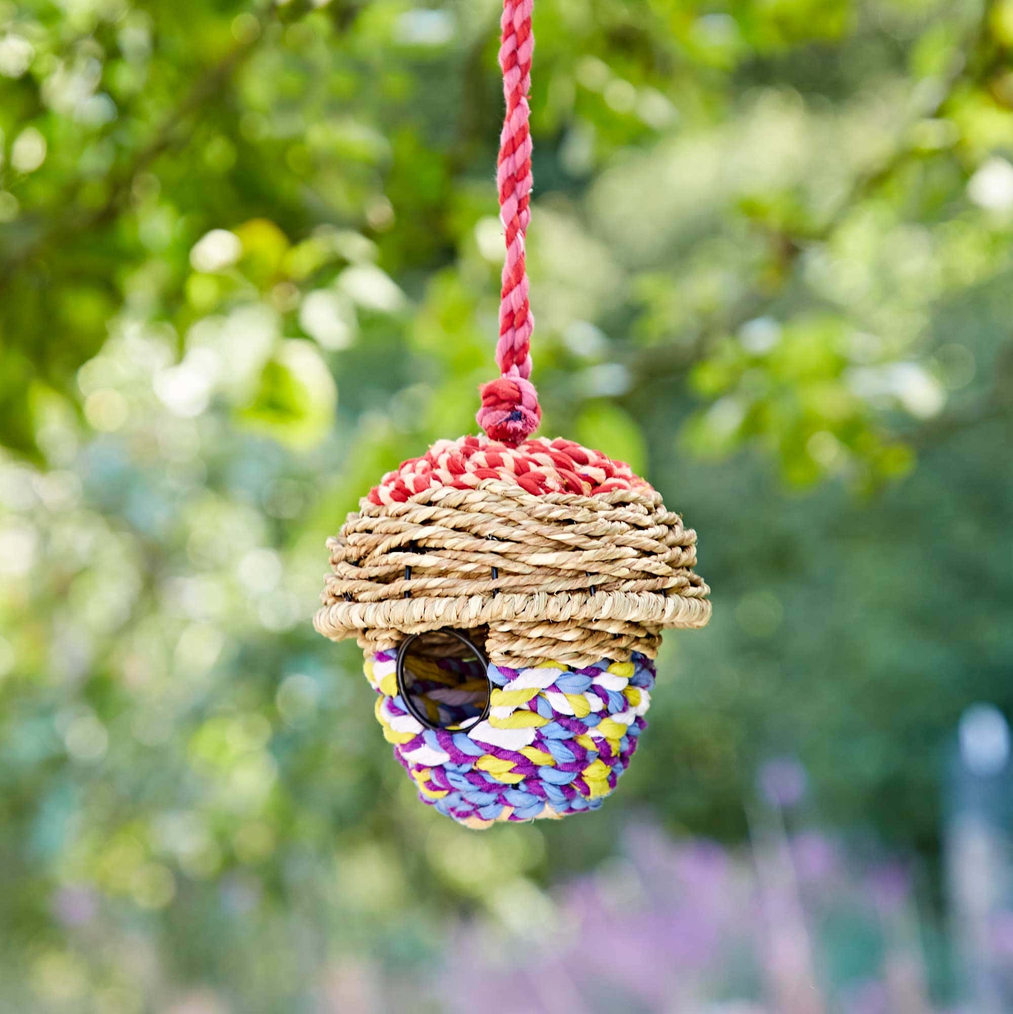 This is a small-sized bird nester from our birdhouse range. Made from recycled metal, cotton and munja, this sustainable nester can be hung with its long loop attachment. Every birdhouse is unique and has a different mix of colours, but we know you’ll love what you’ll get!