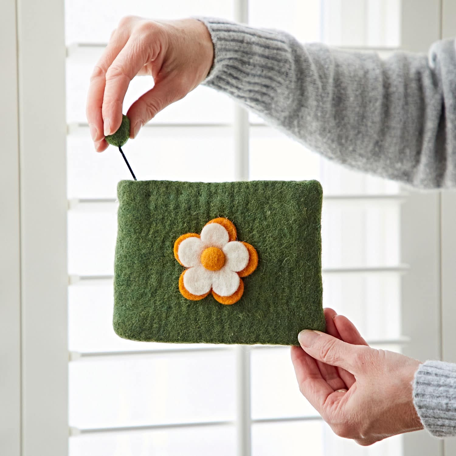 The felt is handmade from sustainable wool using traditional methods. Instead of weaving the wool, heat, moisture, and pressure are applied to entangle the fibres and create the beautiful material.