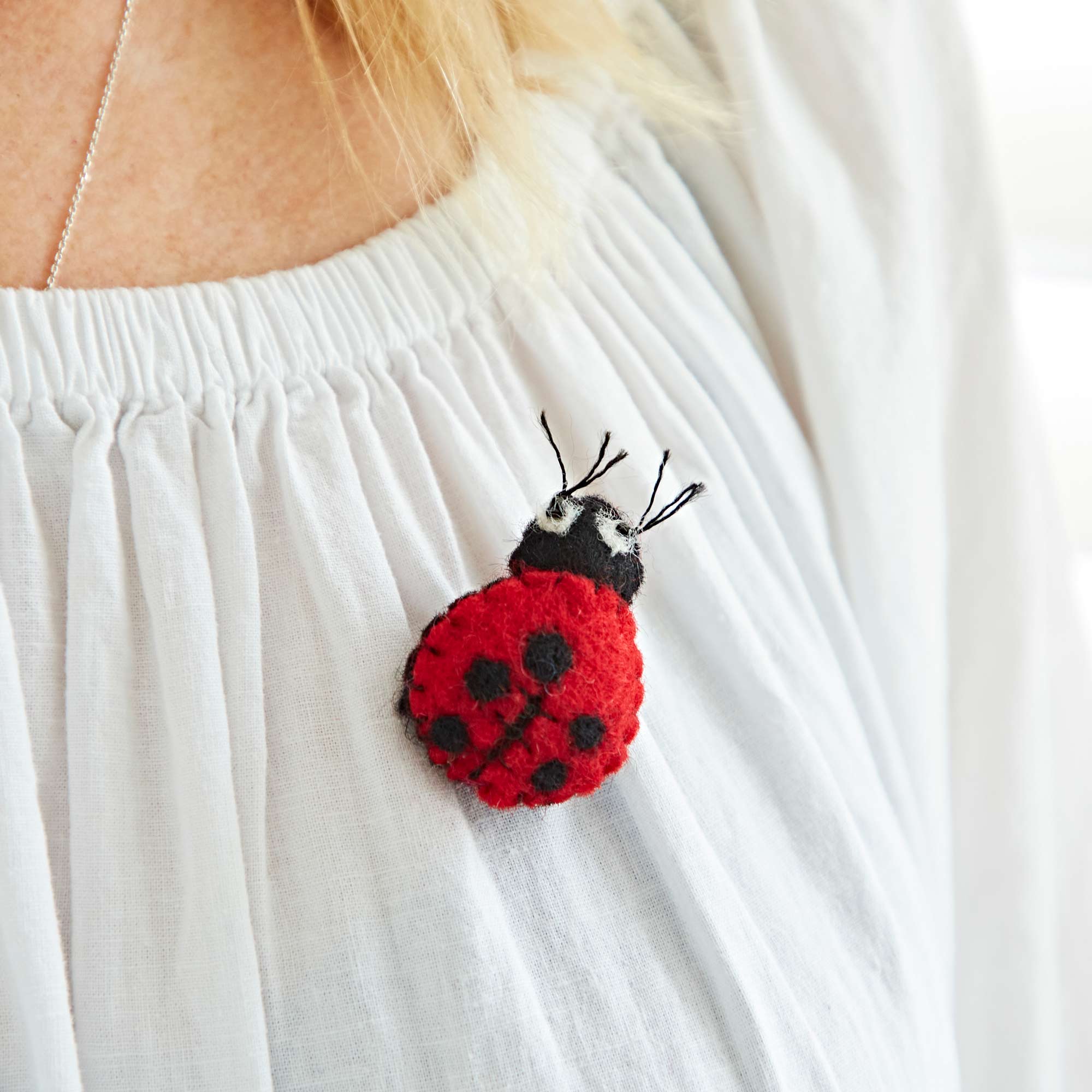 Our felt ladybird brooches are fastened with a C clasp pin.
