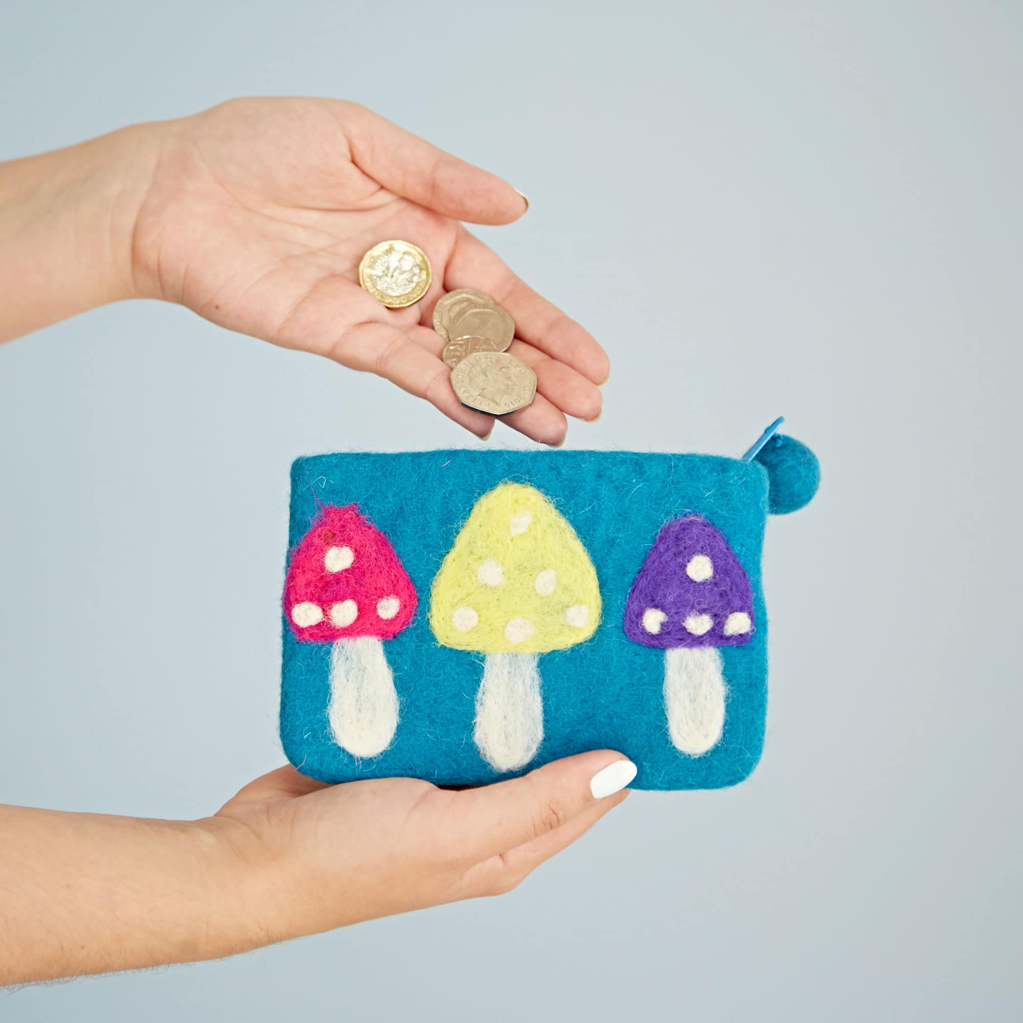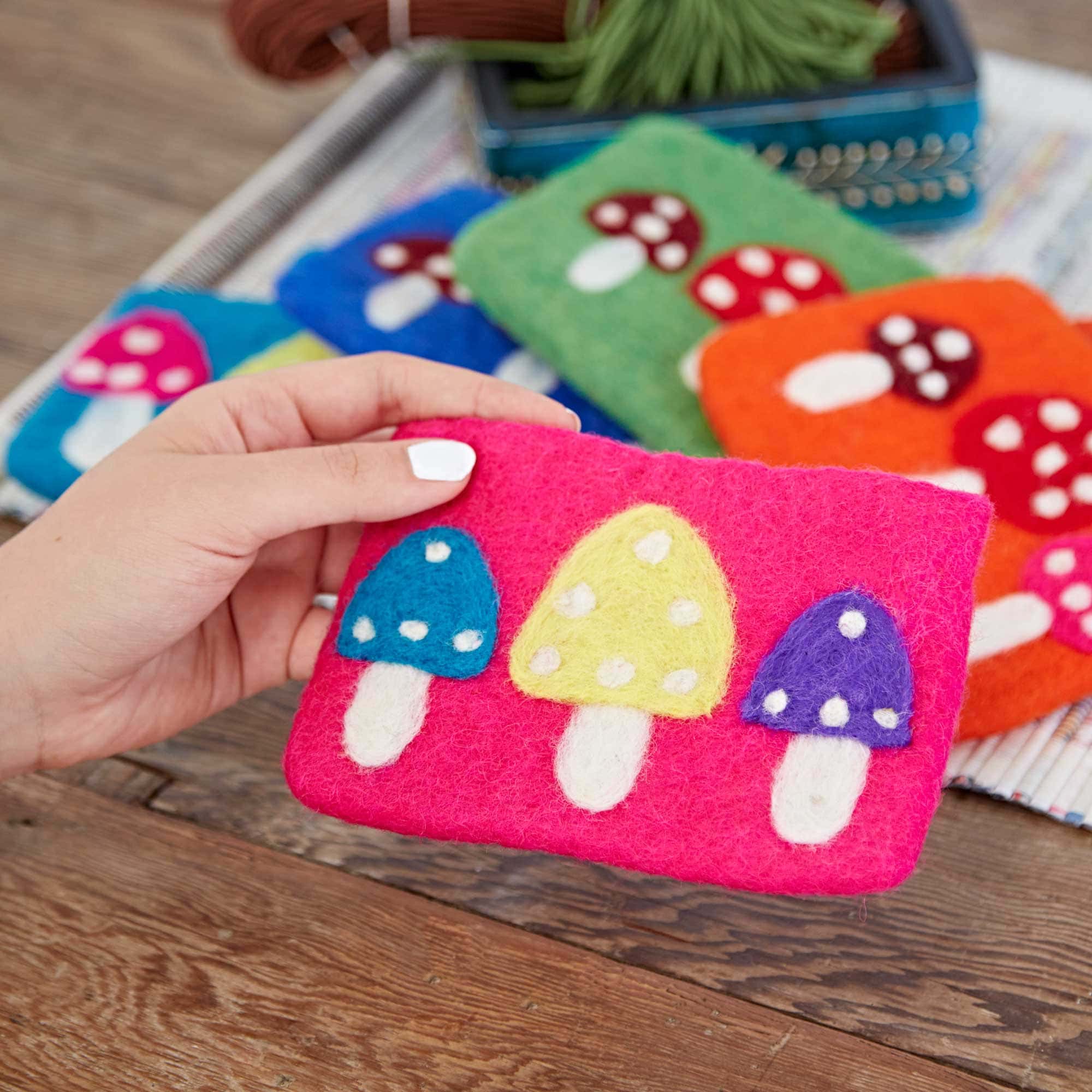 The felt is handmade from sustainable wool using traditional methods. Instead of weaving the wool, heat, moisture, and pressure are applied to entangle the fibres and create the beautiful material.