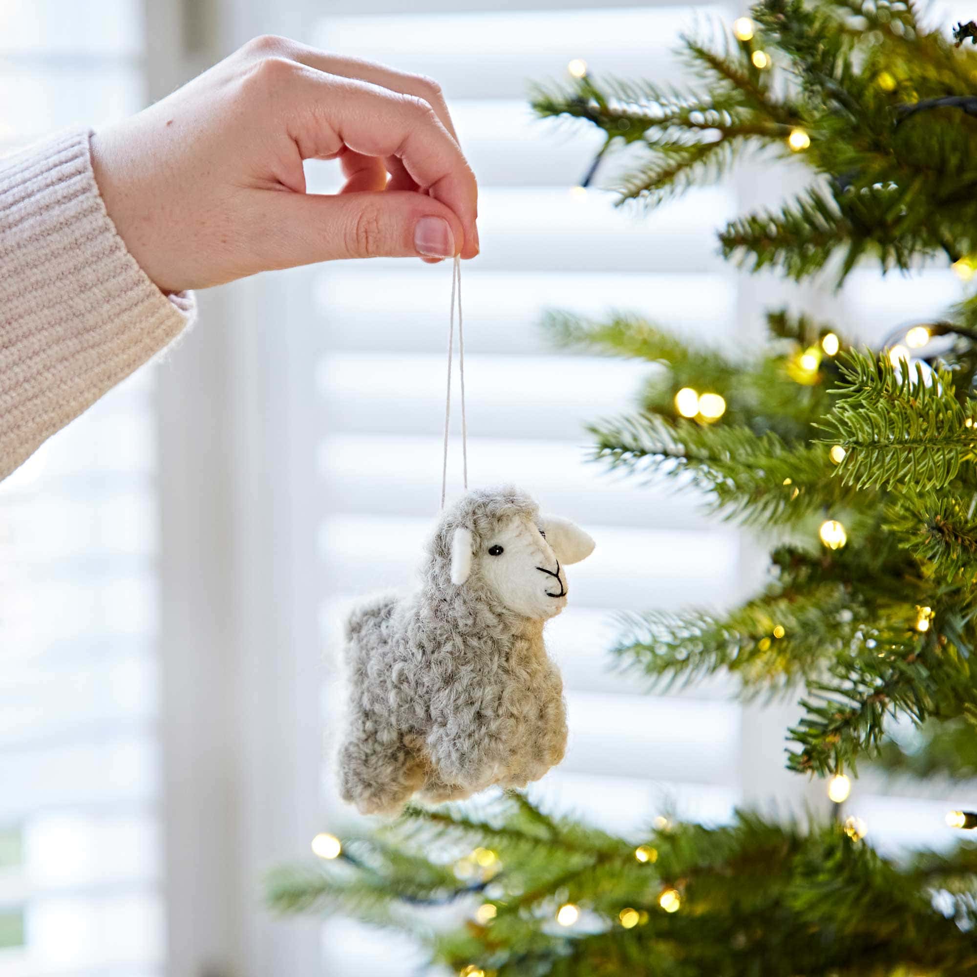 Brighten up your winter décor with our cute felt sheep Christmas decoration. This cute, handmade felt ornament can be hung on your Christmas tree or around the house. Sold separately.