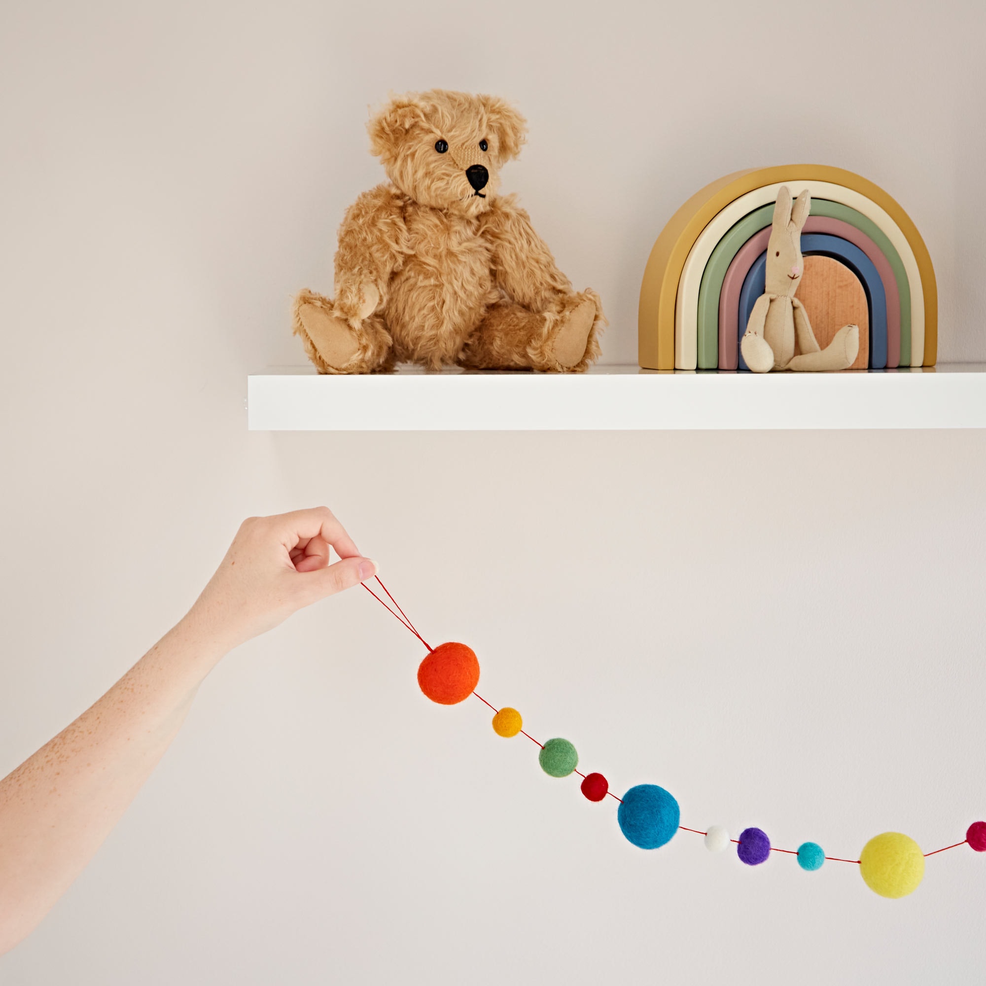The felt is handmade from sustainable wool using traditional methods. Instead of weaving the wool, heat, moisture, and pressure are applied to entangle the fibres and create the beautiful material.