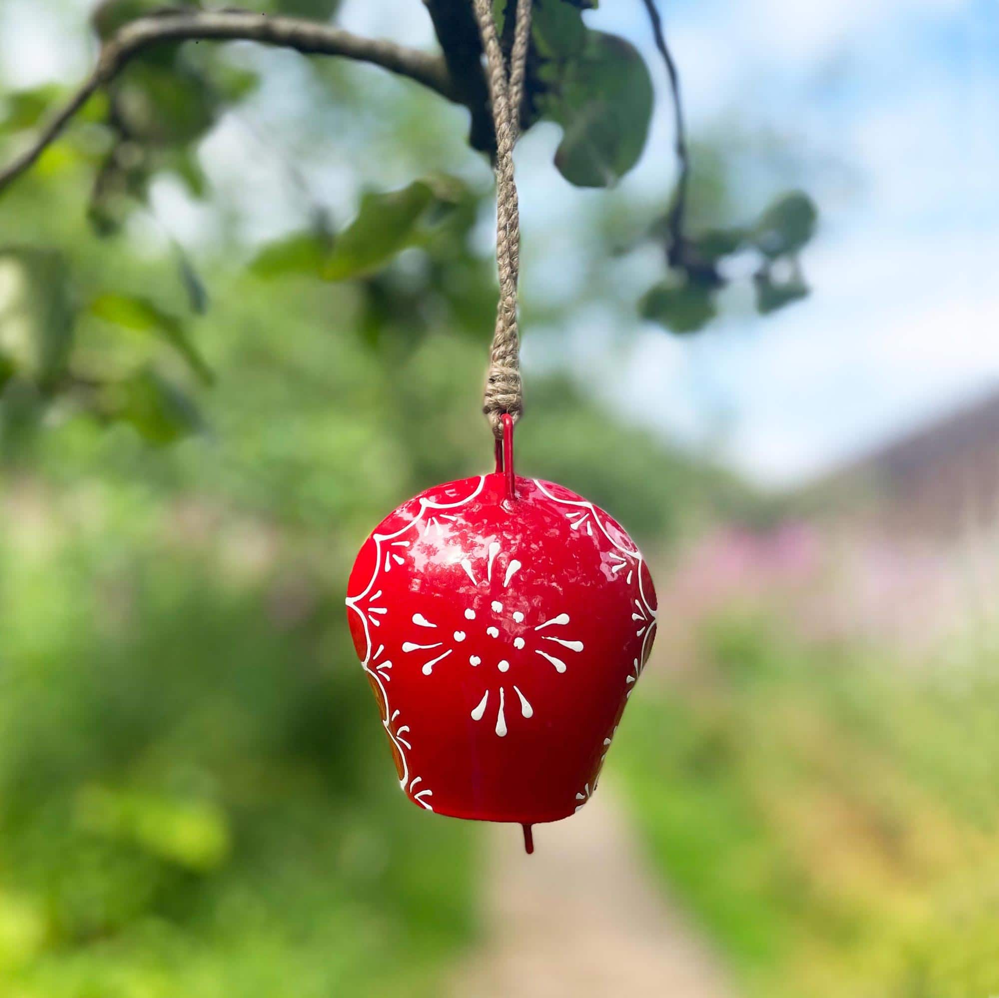 These red iron cow bells have been expertly crafted by artisans using traditional skills handed down from one generation to the next. The bell is crafted from recycled iron with a hand-painted finish.