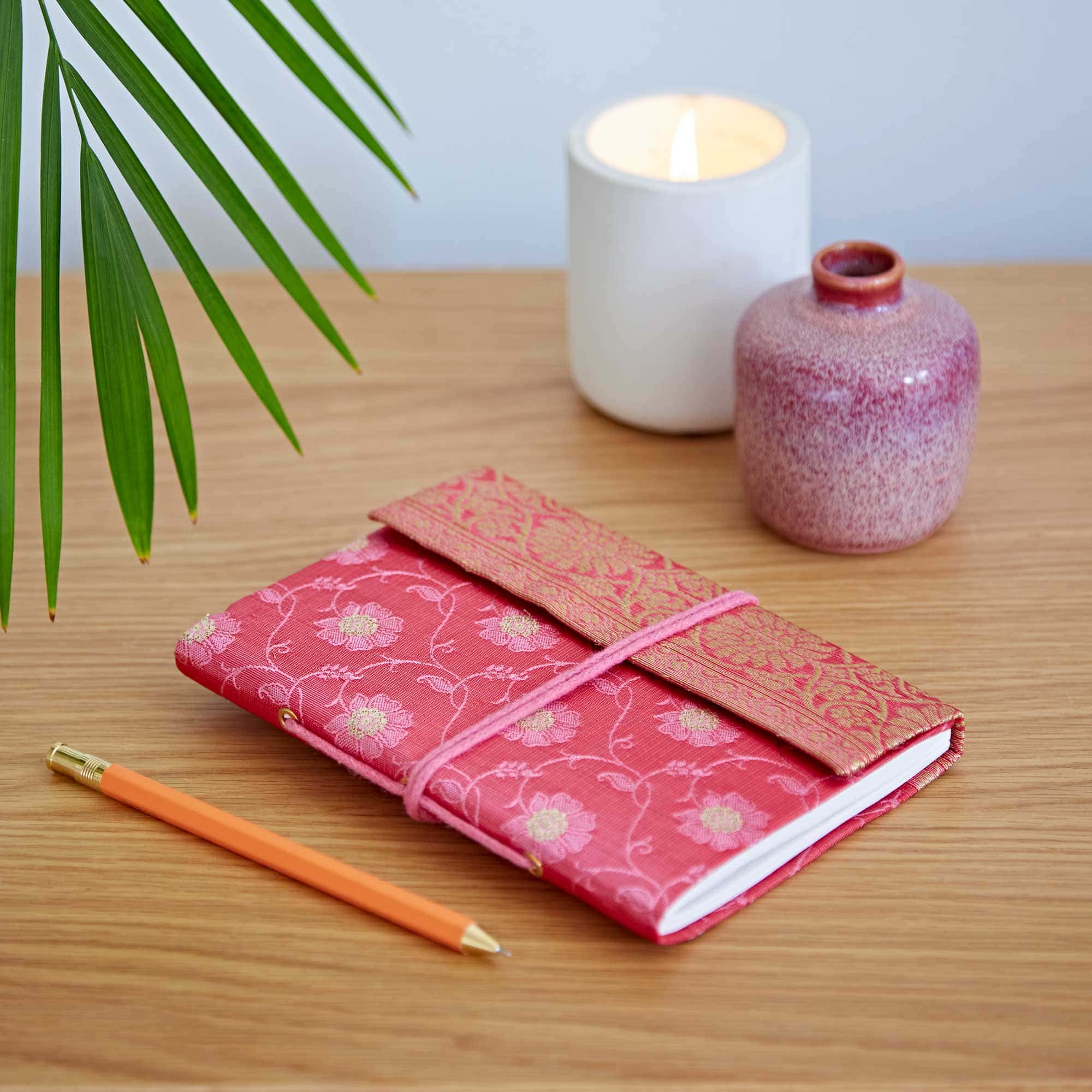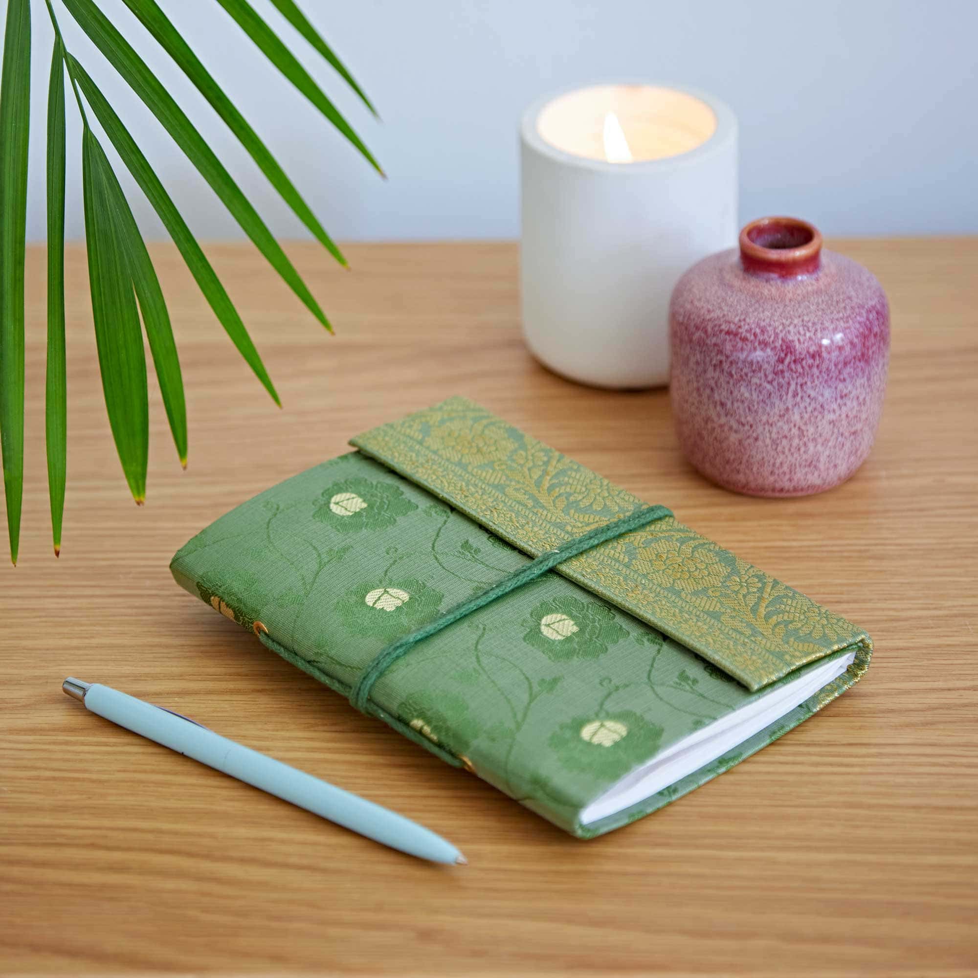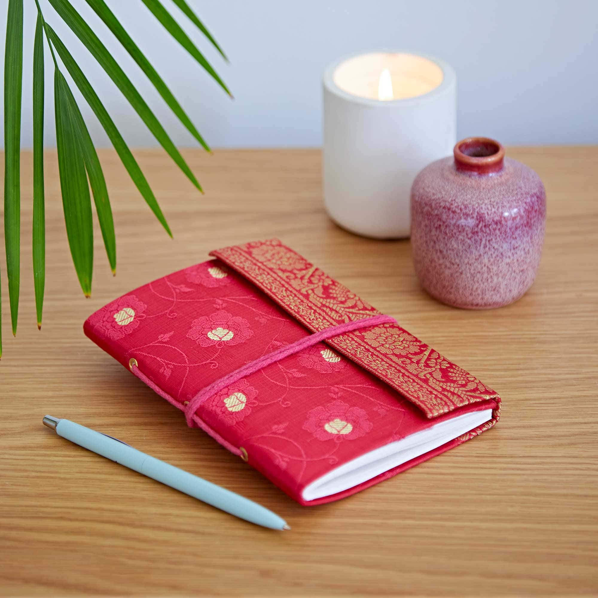 Our beautiful Fair Trade medium sari fabric notebooks will add a burst of colour to your writing. The perfect size to slip into your bag, they’re the ideal companion for notes, doodles, or just for your to-do lists. Each notebook is filled with pages of unlined, handmade khadda paper.