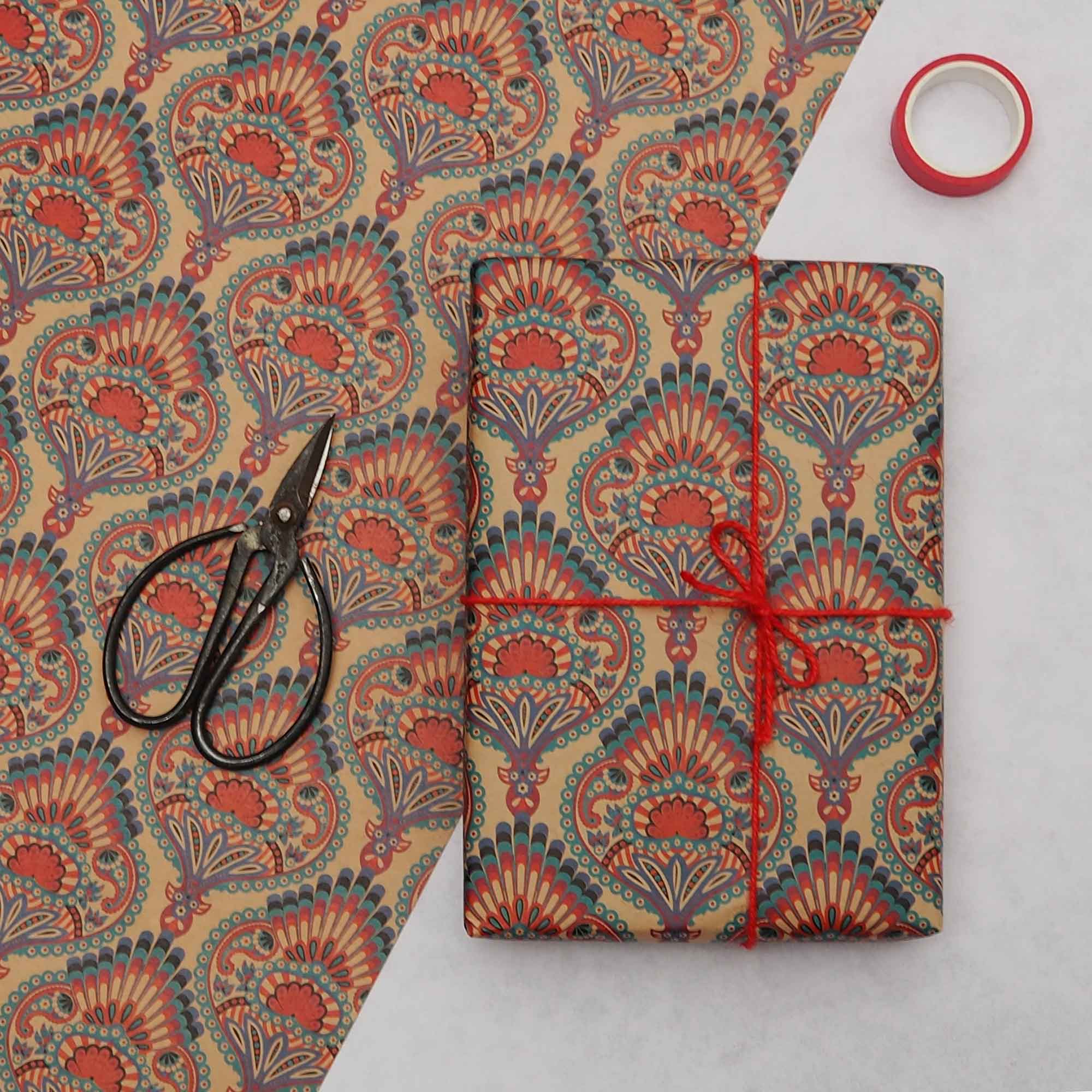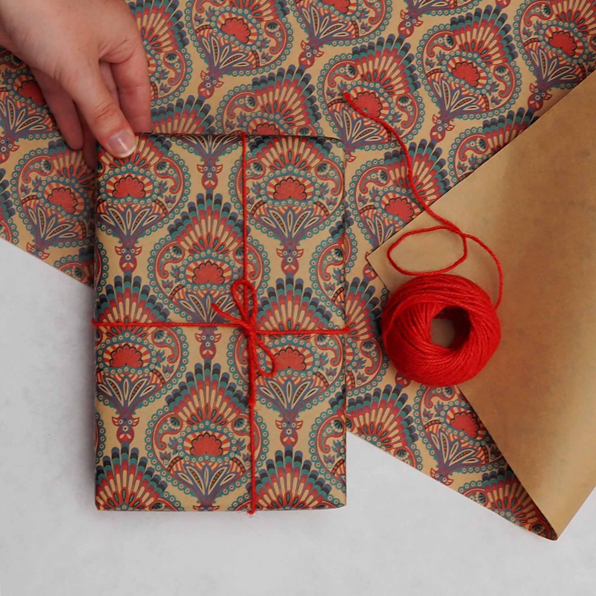 This beautiful handmade peacock feather patterned gift wrap comes in a stunning peacock pattern. Each sheet is crafted by Fair Trade artisans from responsibly sourced, environmentally friendly, and socially responsible FSC accredited paper.