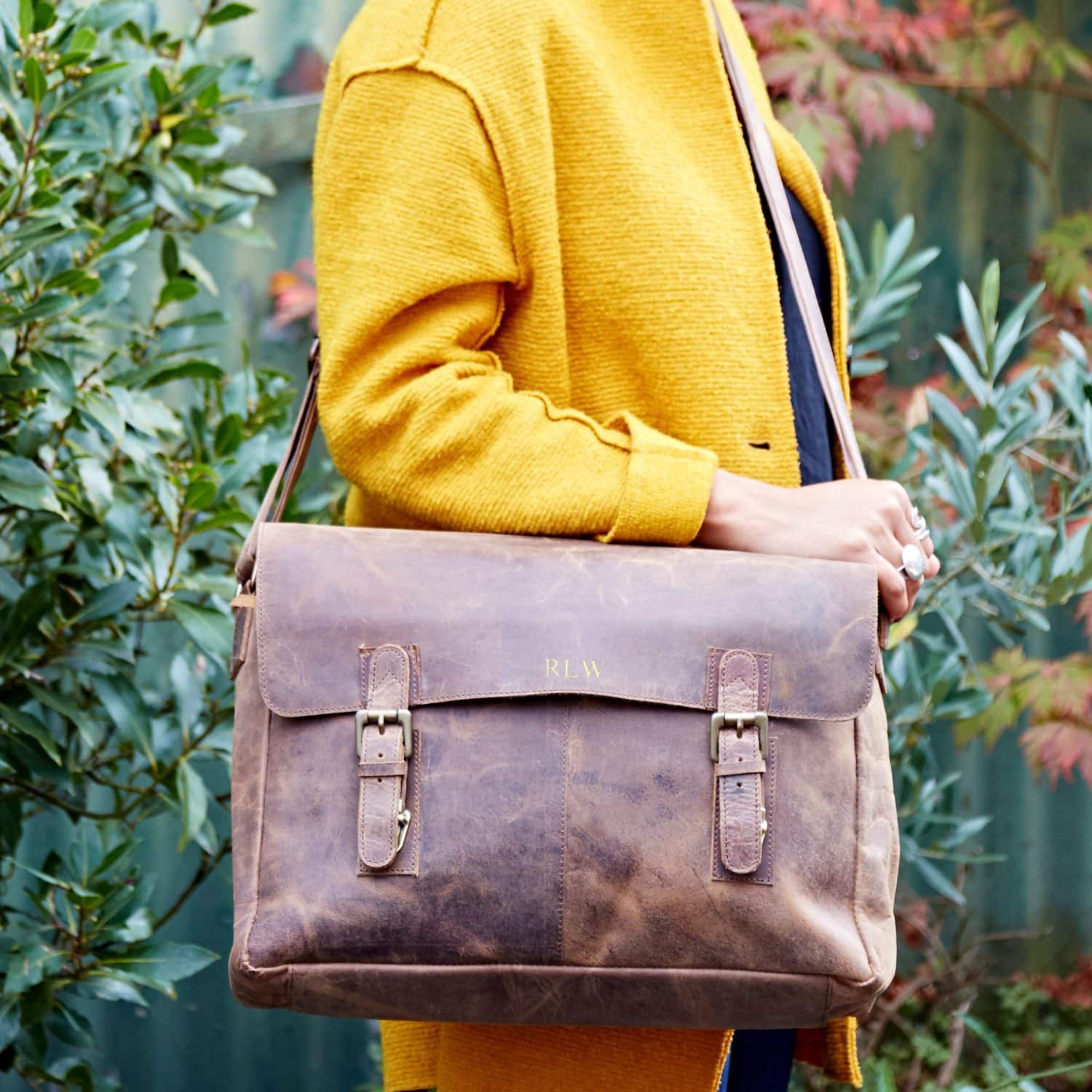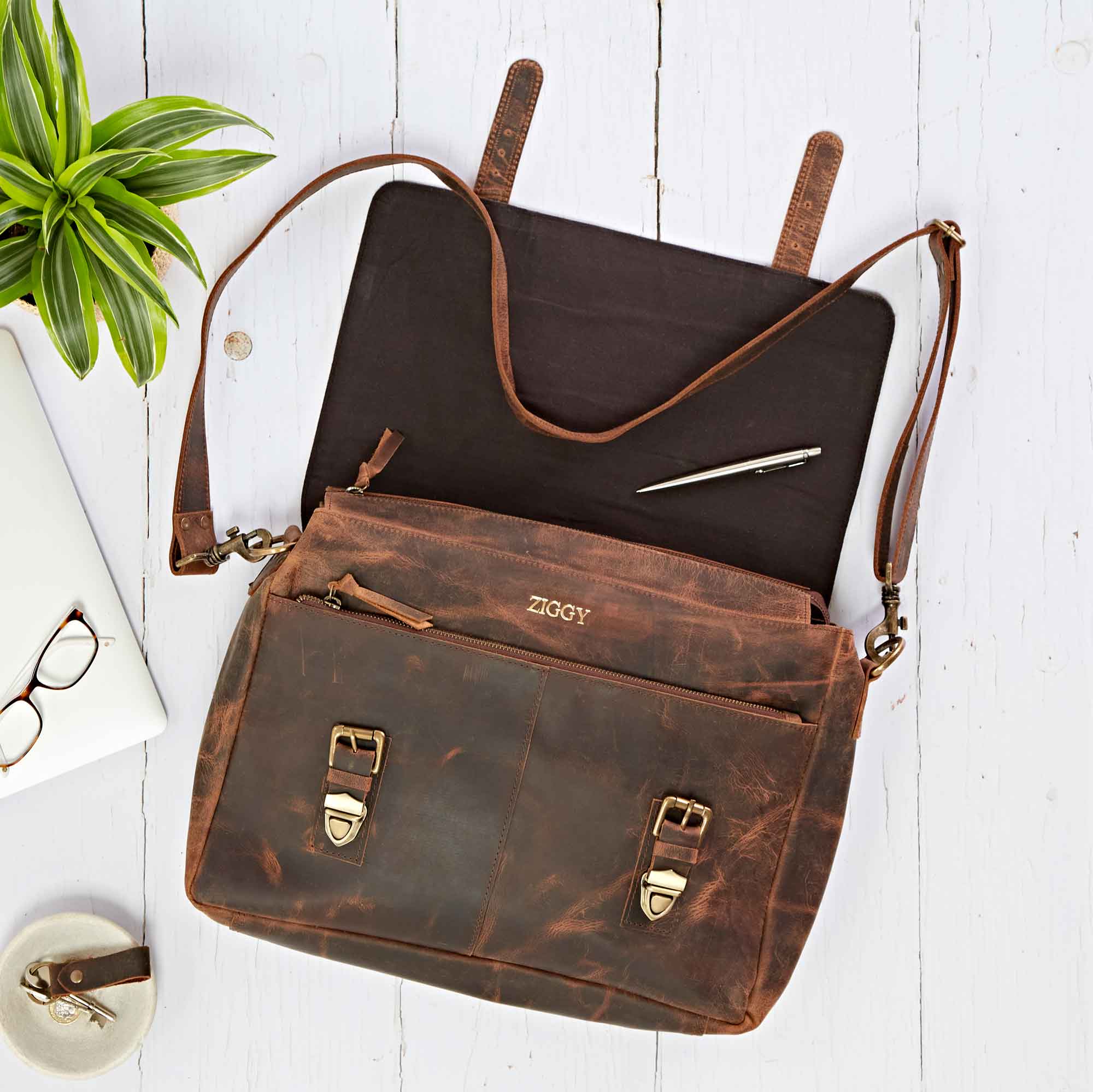 Personalised Brown Buffalo Leather Satchel Style Messenger Bag
