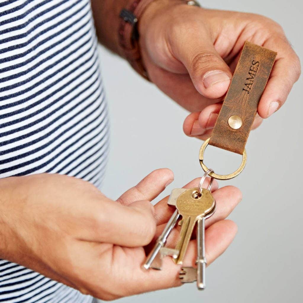 The buffalo leather is treated with natural oils to keep it protected, water-resistant, and to give it a rich finish. While it’s a hard-wearing leather the character is such that there may be a map of small creases, marks or blemishes telling the tale of its travels. As it ages it will naturally become softer and slightly darker. We love how unique this makes every keyring, and we hope you do too.
