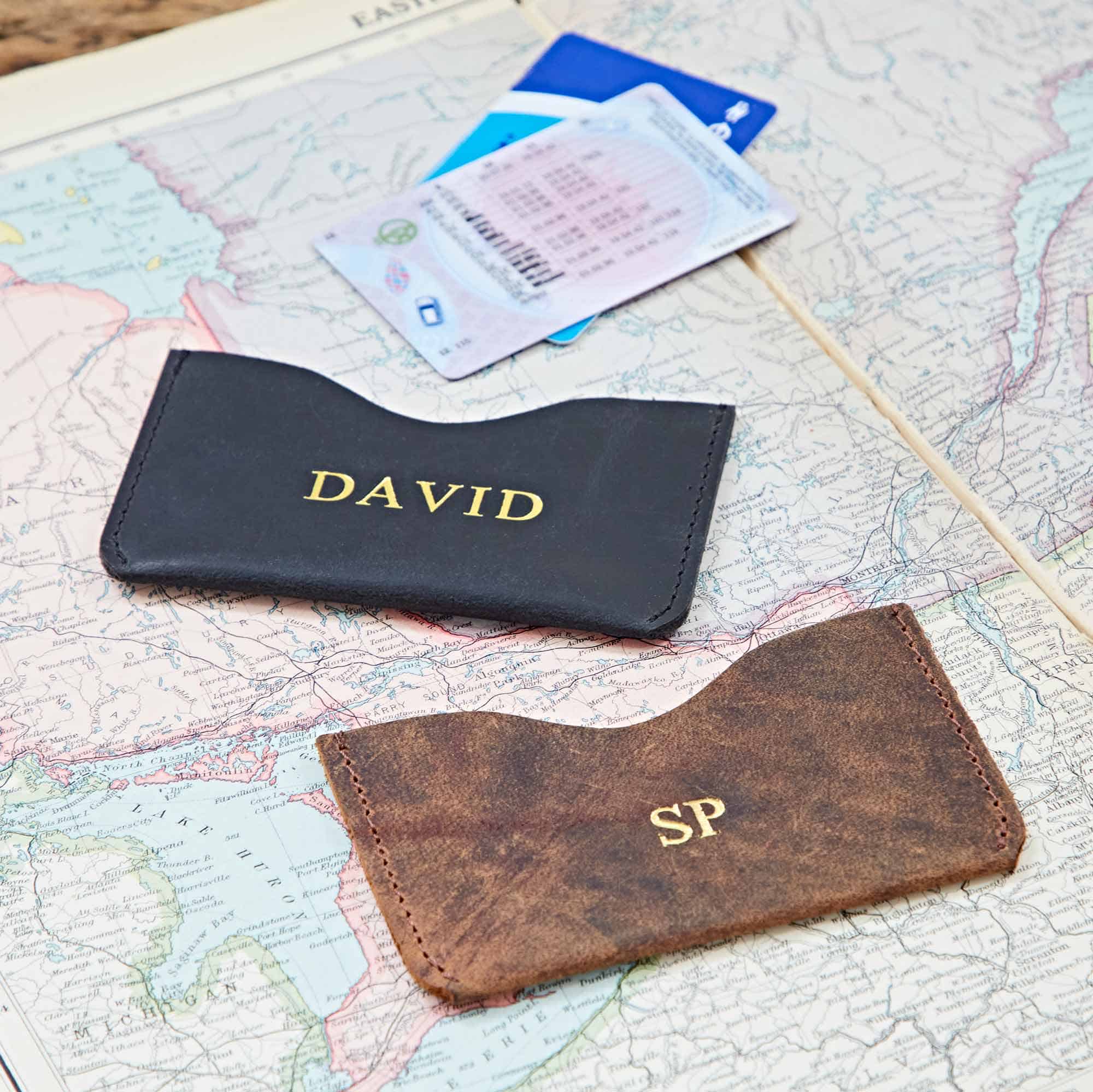 This personalised buffalo leather slim card holder has one section, large enough to fit a few of your most essential cards. The durable leather holds them in place securely.