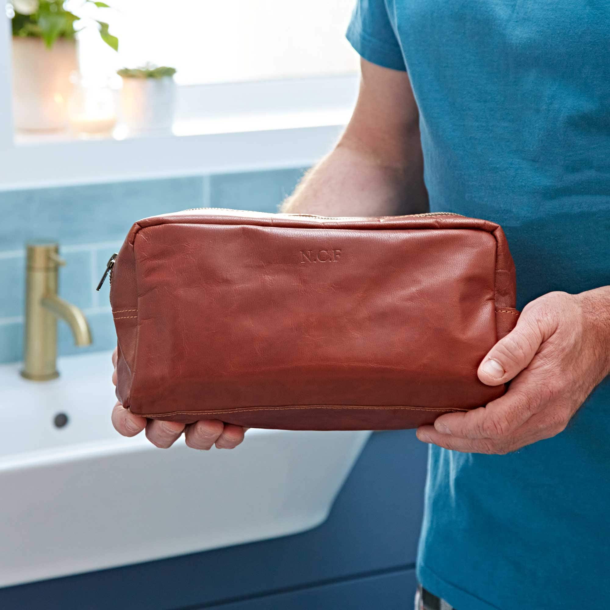 The leather is treated with natural oils to keep it protected, water-resistant, and to give it a rich, smooth finish. While it’s a hard-wearing leather the character is such that there may be a map of small creases, marks or blemishes telling the tale of its travels. As it ages it will naturally become softer and slightly darker. We love how unique this makes every leather wash bag, and we hope you do too.