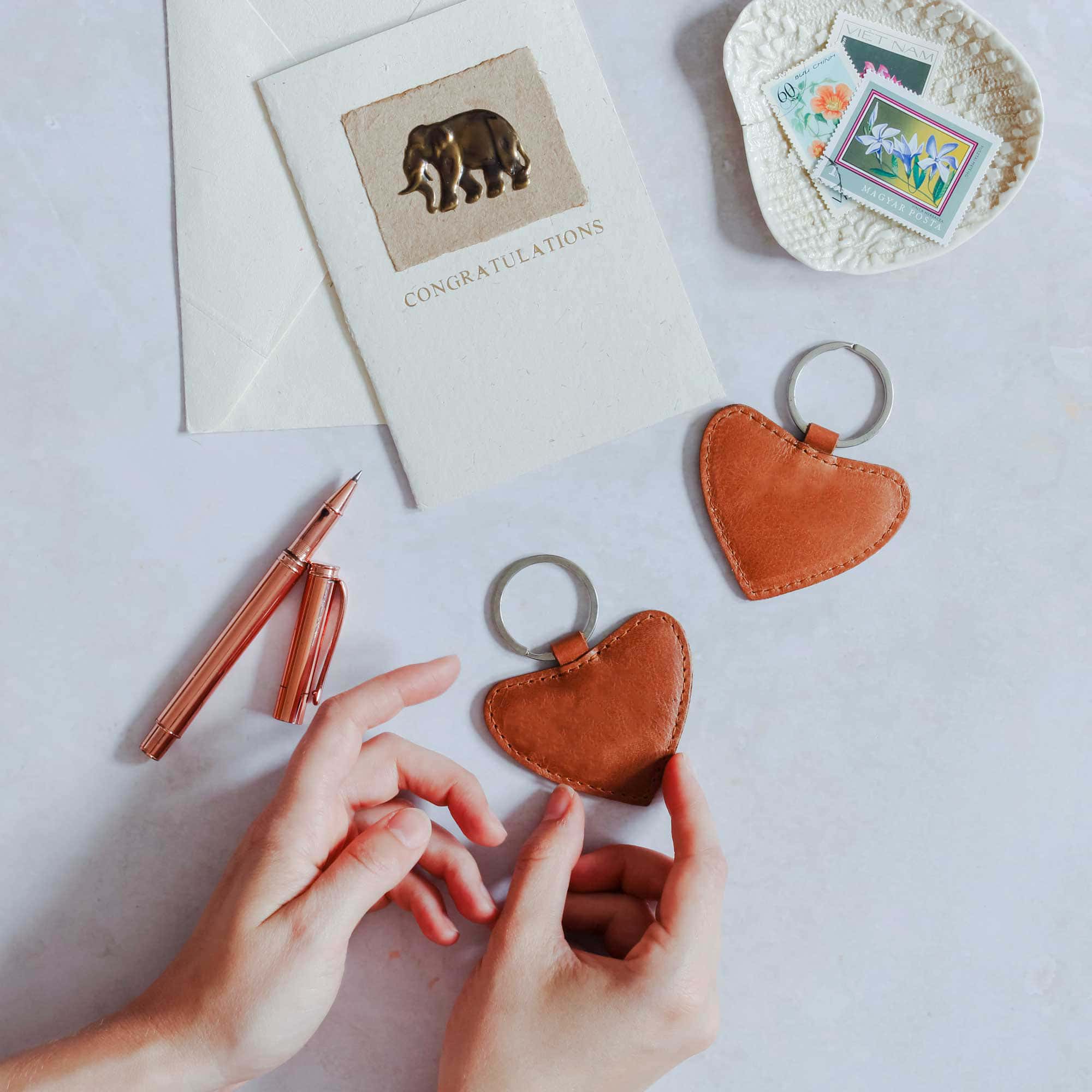 The leather is treated with natural oils to keep it protected, water-resistant, and to give it a rich, smooth finish. While it’s a hard-wearing leather the character is such that there may be a map of small creases, marks or blemishes telling the tale of its travels. As it ages it will naturally become softer and slightly darker. We love how unique this makes every keyring, and we hope you do too.